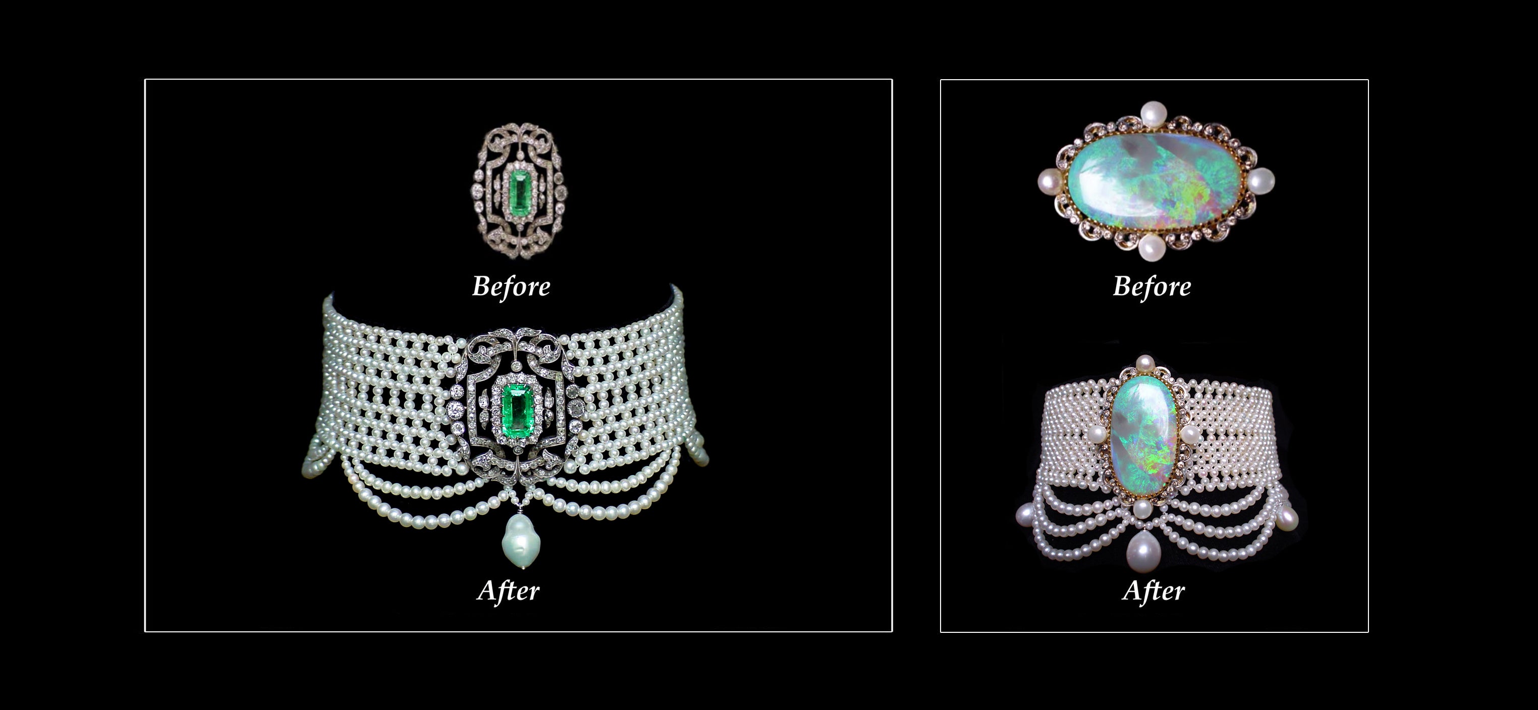 Don't Just Inherit It, Wear It! - is a project I began to revitalize cherished Hierlooms and Vintage pieces into exquisite, contemporary wearable jewelry. This transformation process allows to rejuvenate aging pieces, infusing them with a renewed sense of style and relevance. The following photos showcase examples of this project.