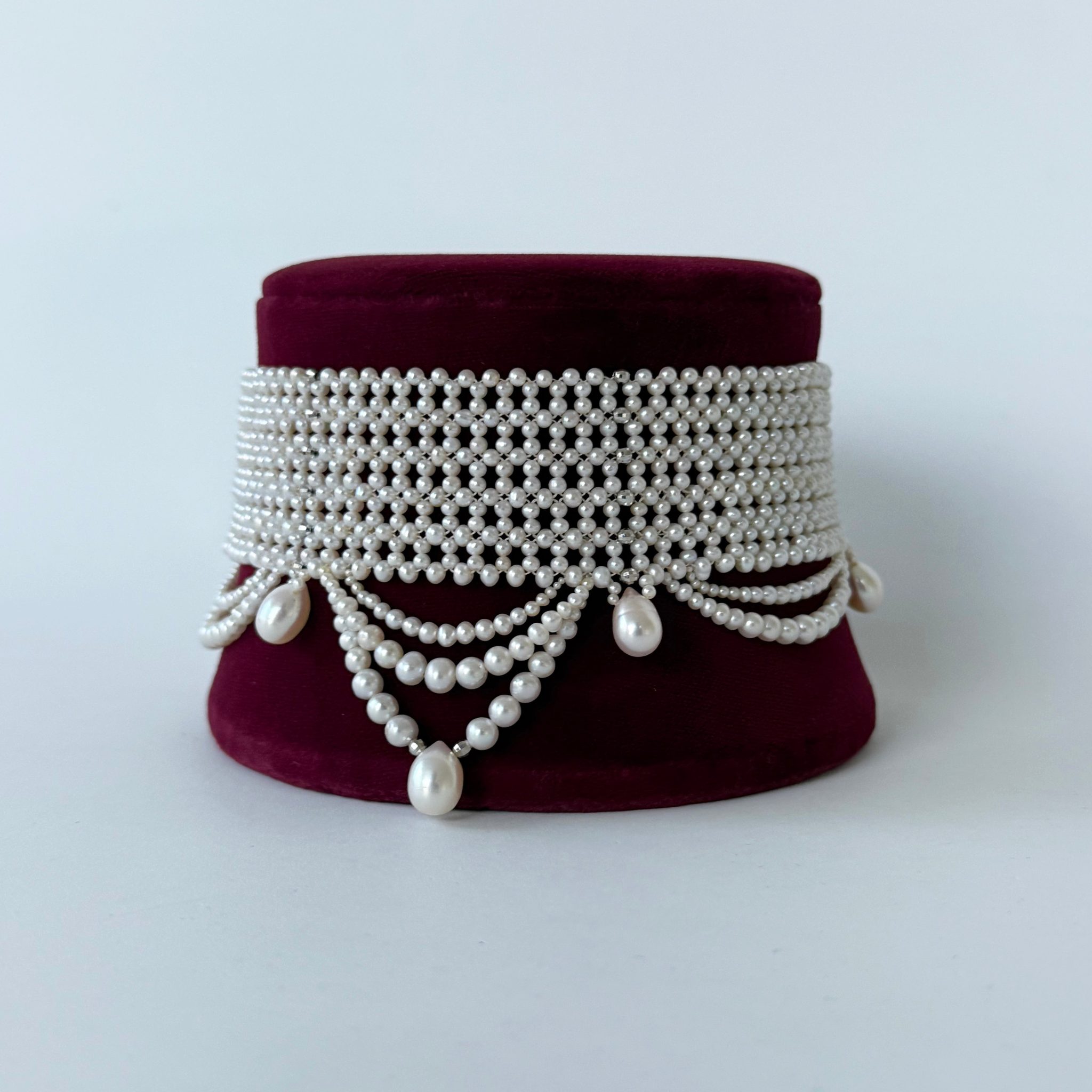 Be the first to review “Adjustable Draped Pearl Choker with Rhodium Silver”