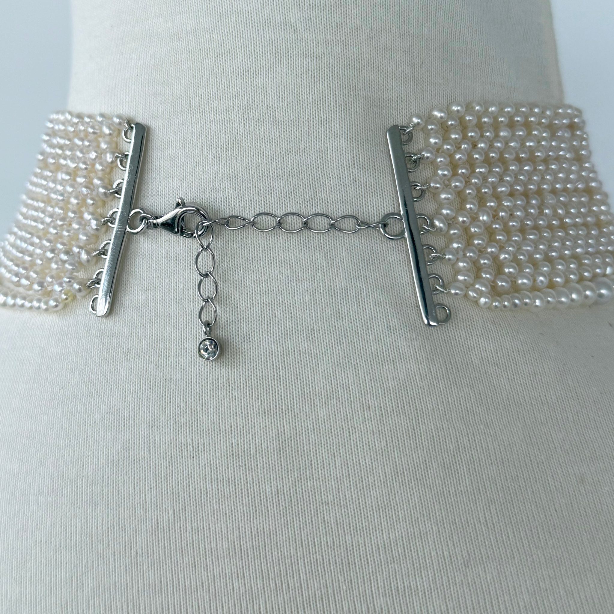 Adjustable Draped Pearl Choker with Rhodium Silver
