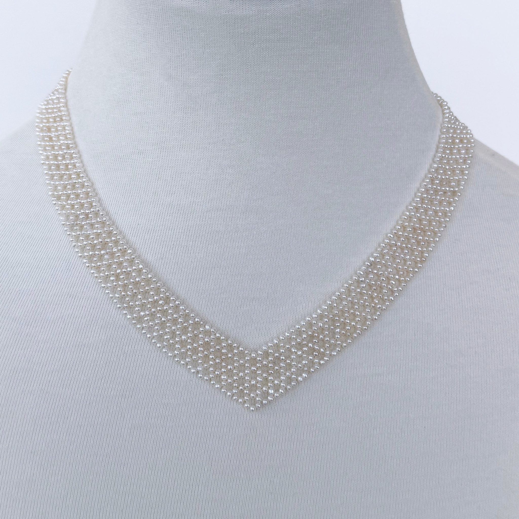 Be the first to review “Bridal Pearl Woven V Necklace With 14k”