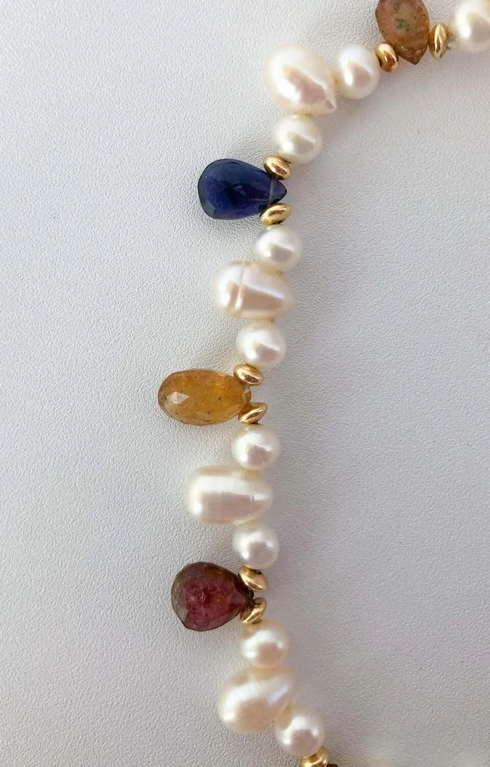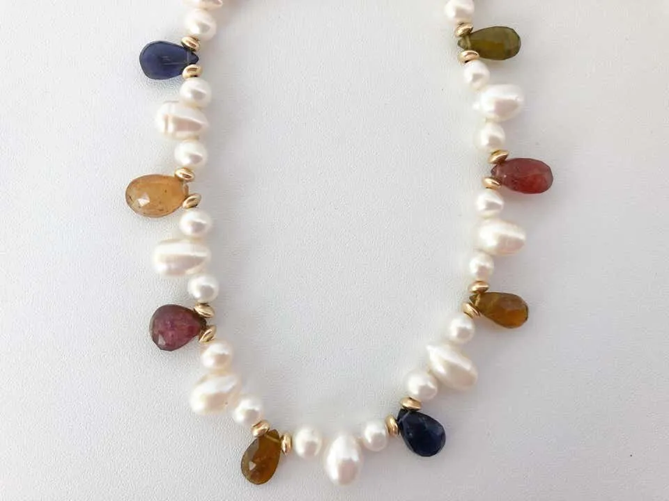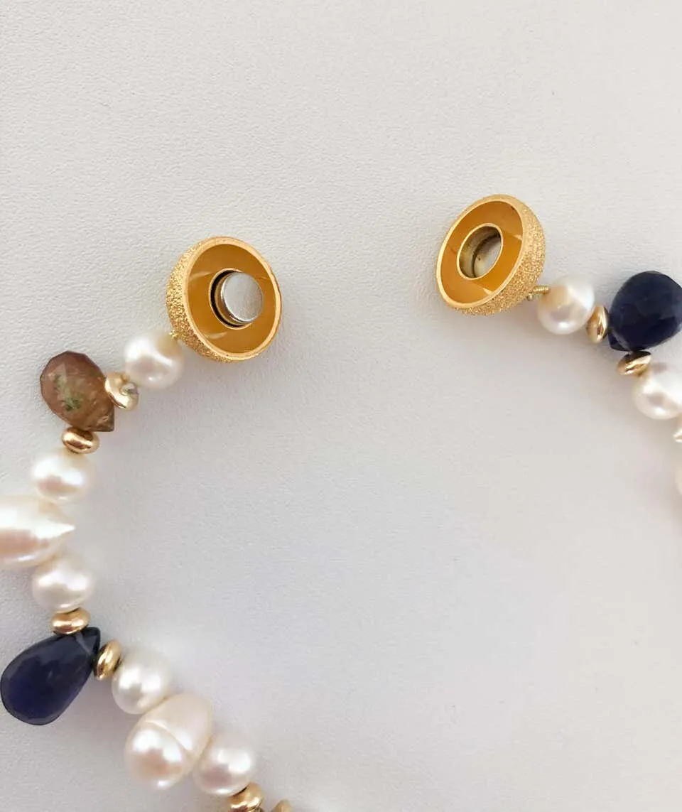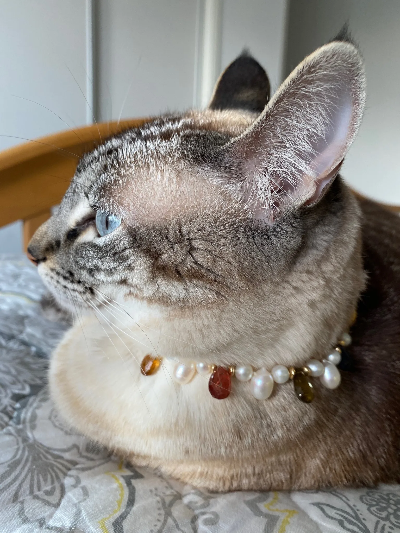 Marina J. Pet Collar/Necklace with Real Pearls, Iolite, Kyanite and Tourmaline