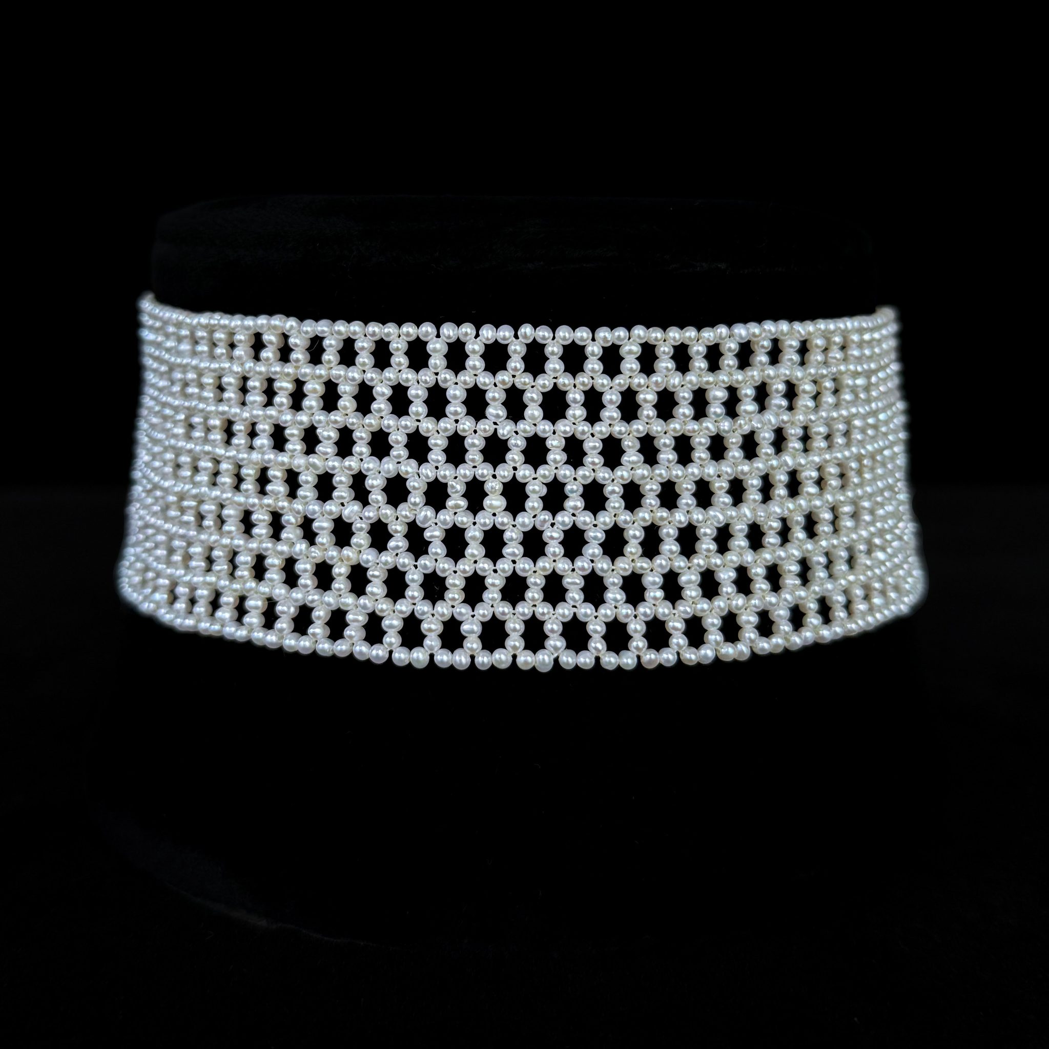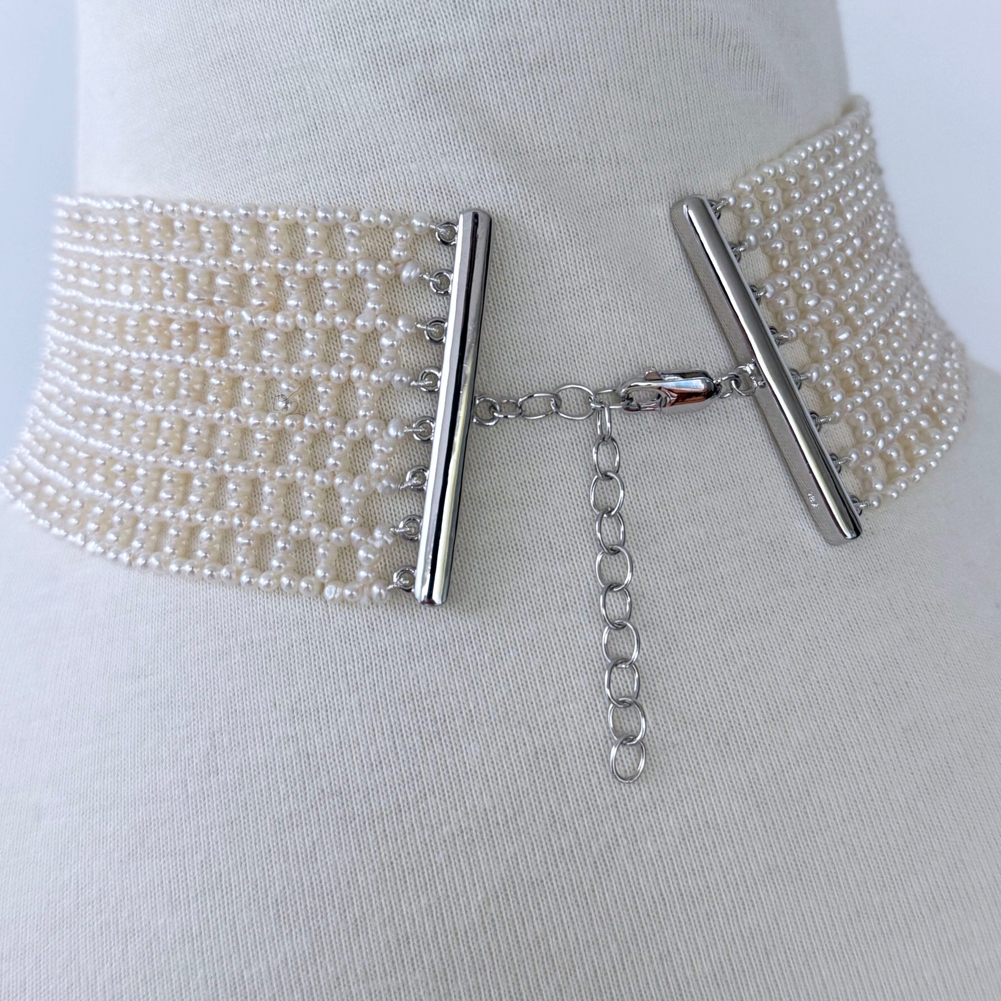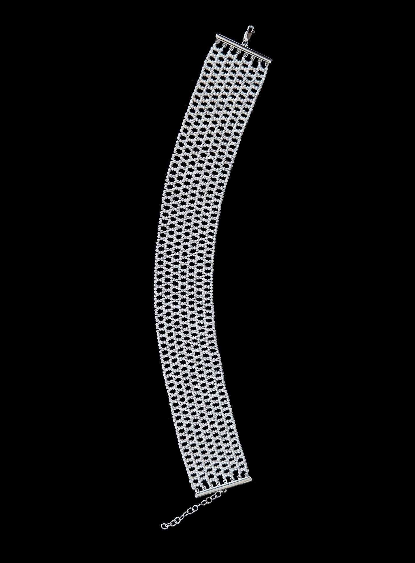 Seed Pearl Woven Choker with Silver Adjustable Clasp
