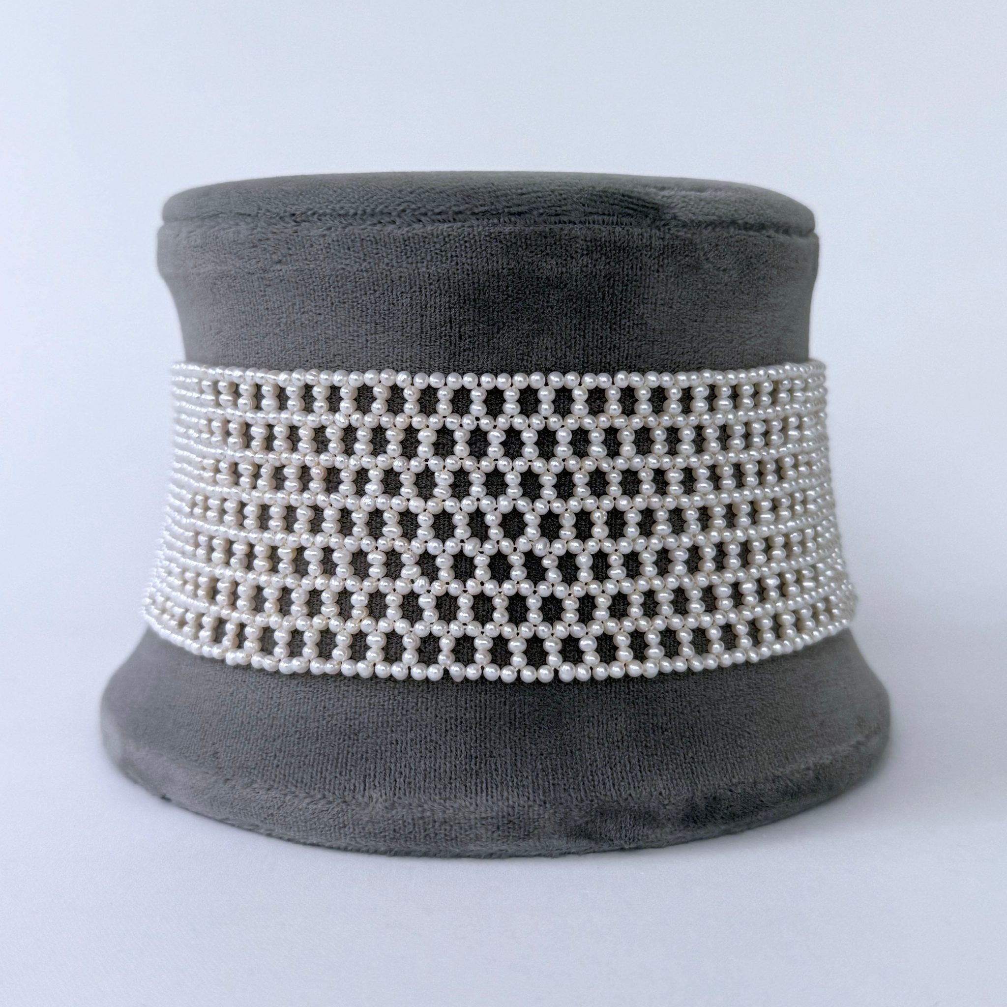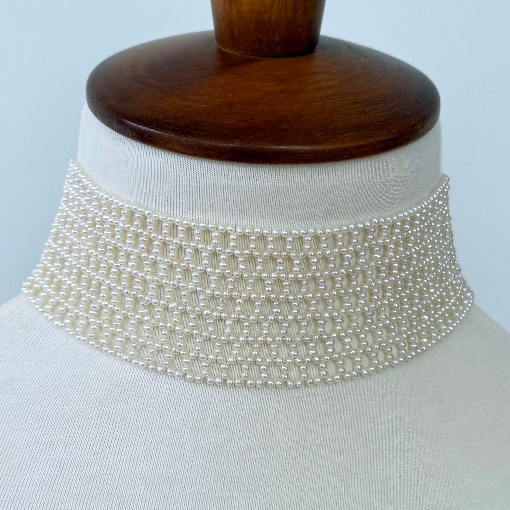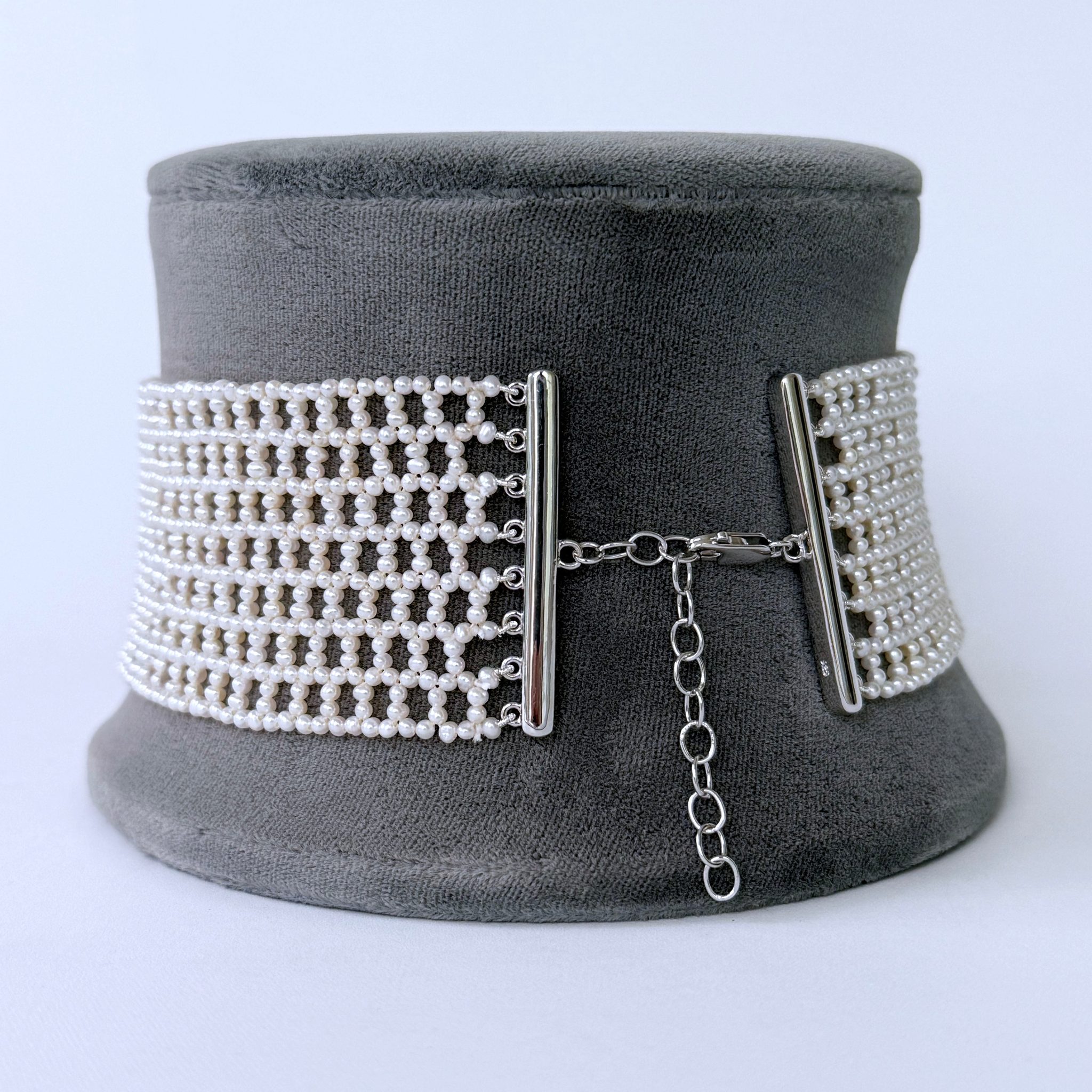 Seed Pearl Woven Choker with Silver Adjustable Clasp