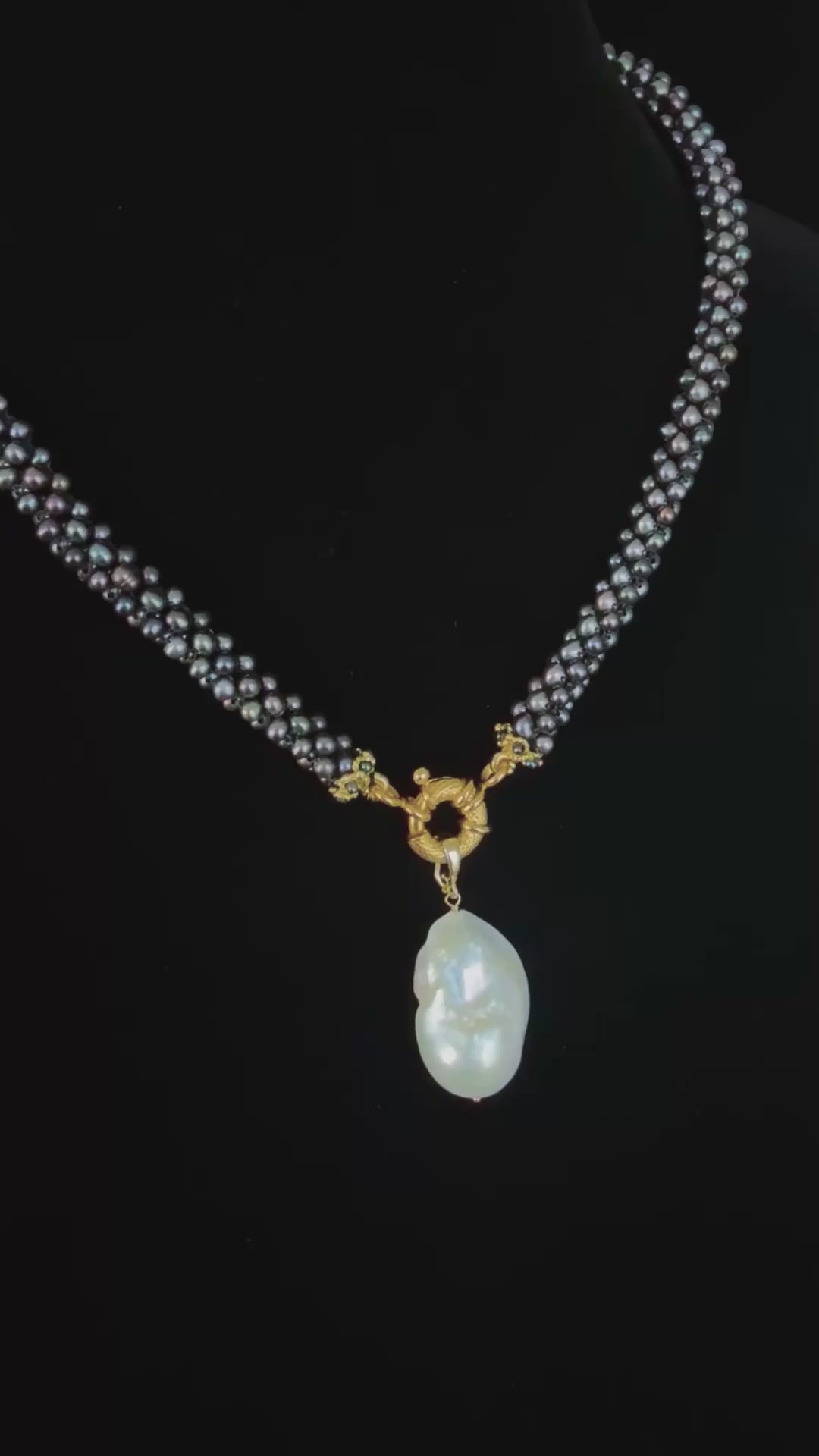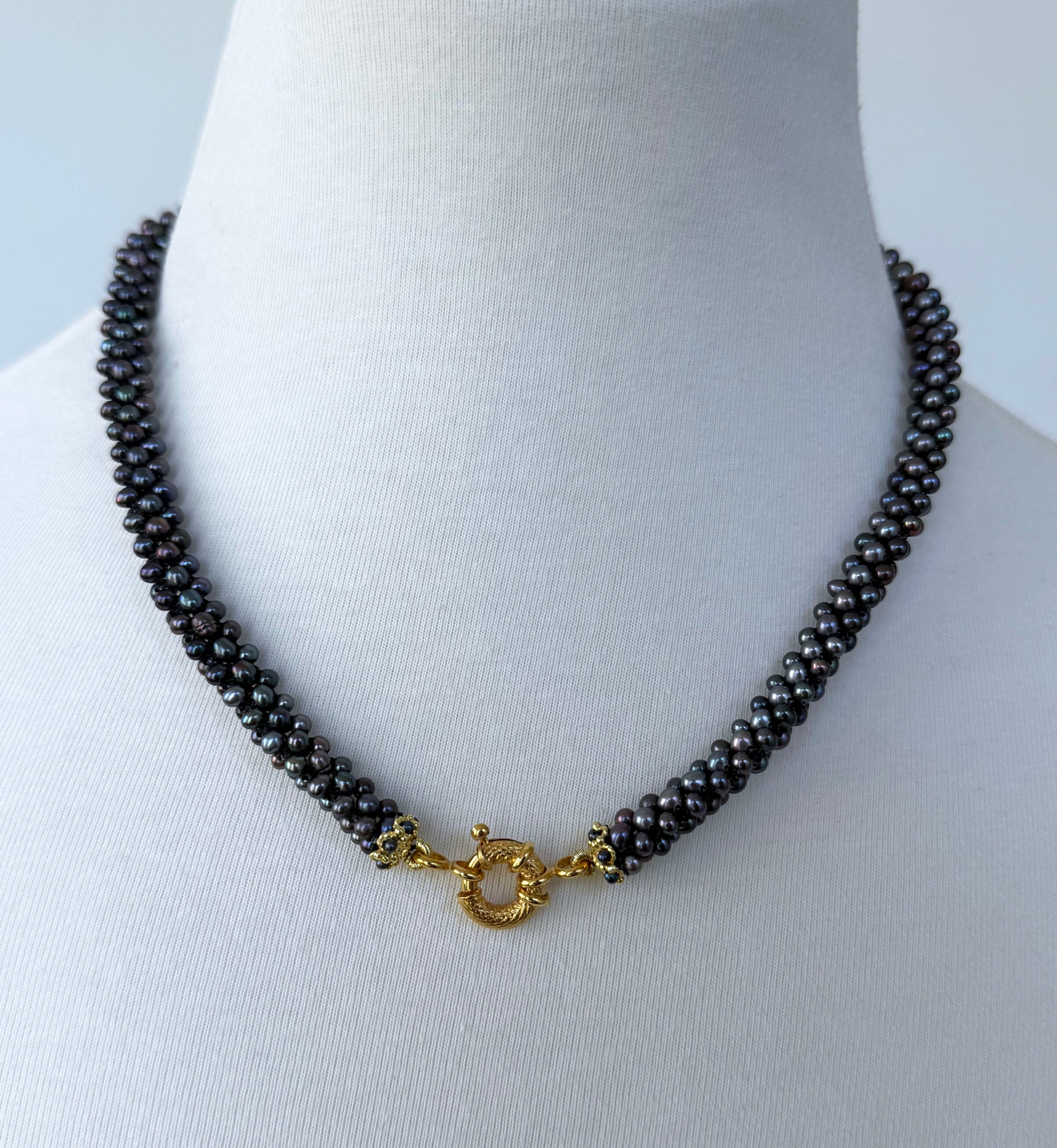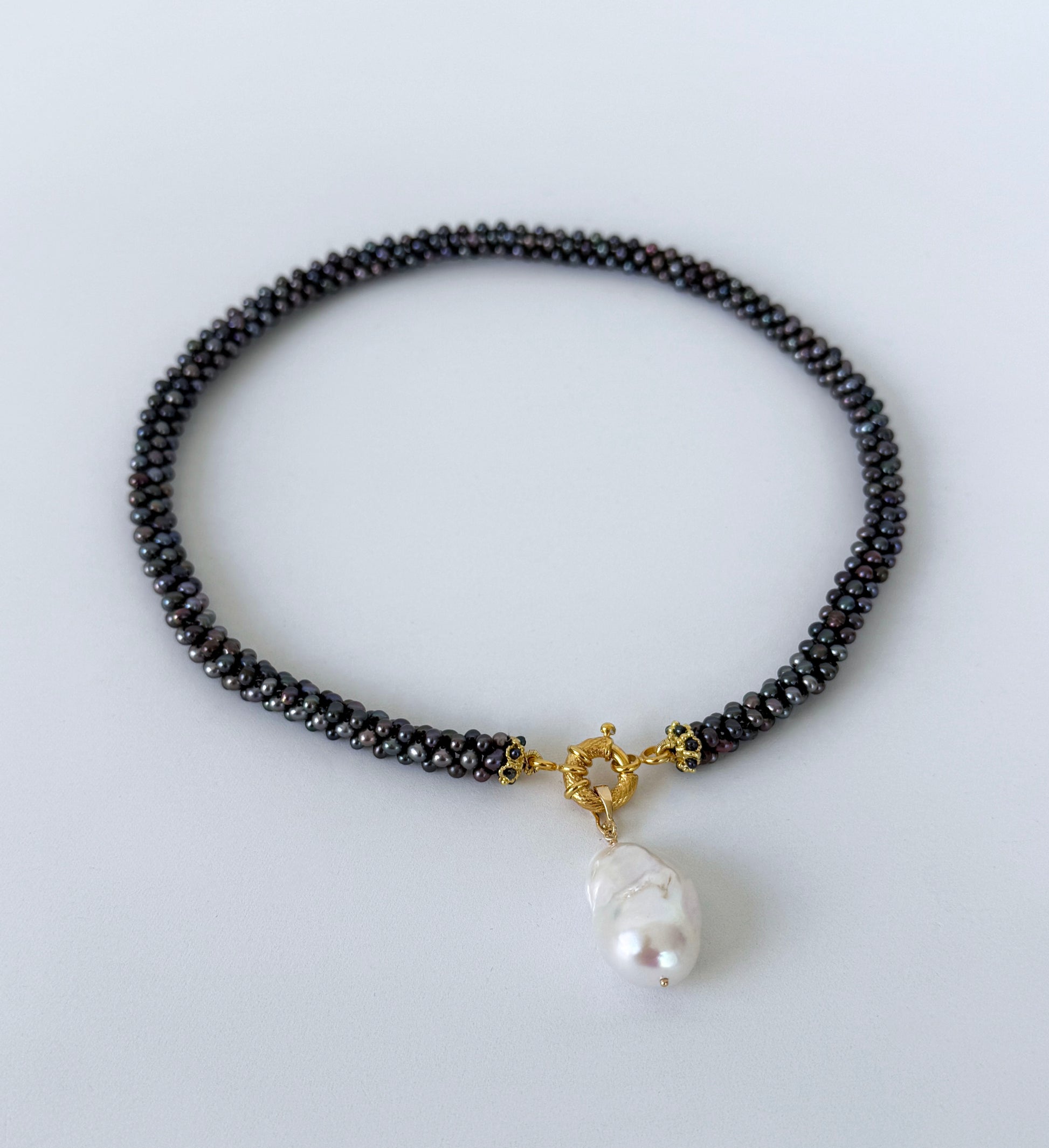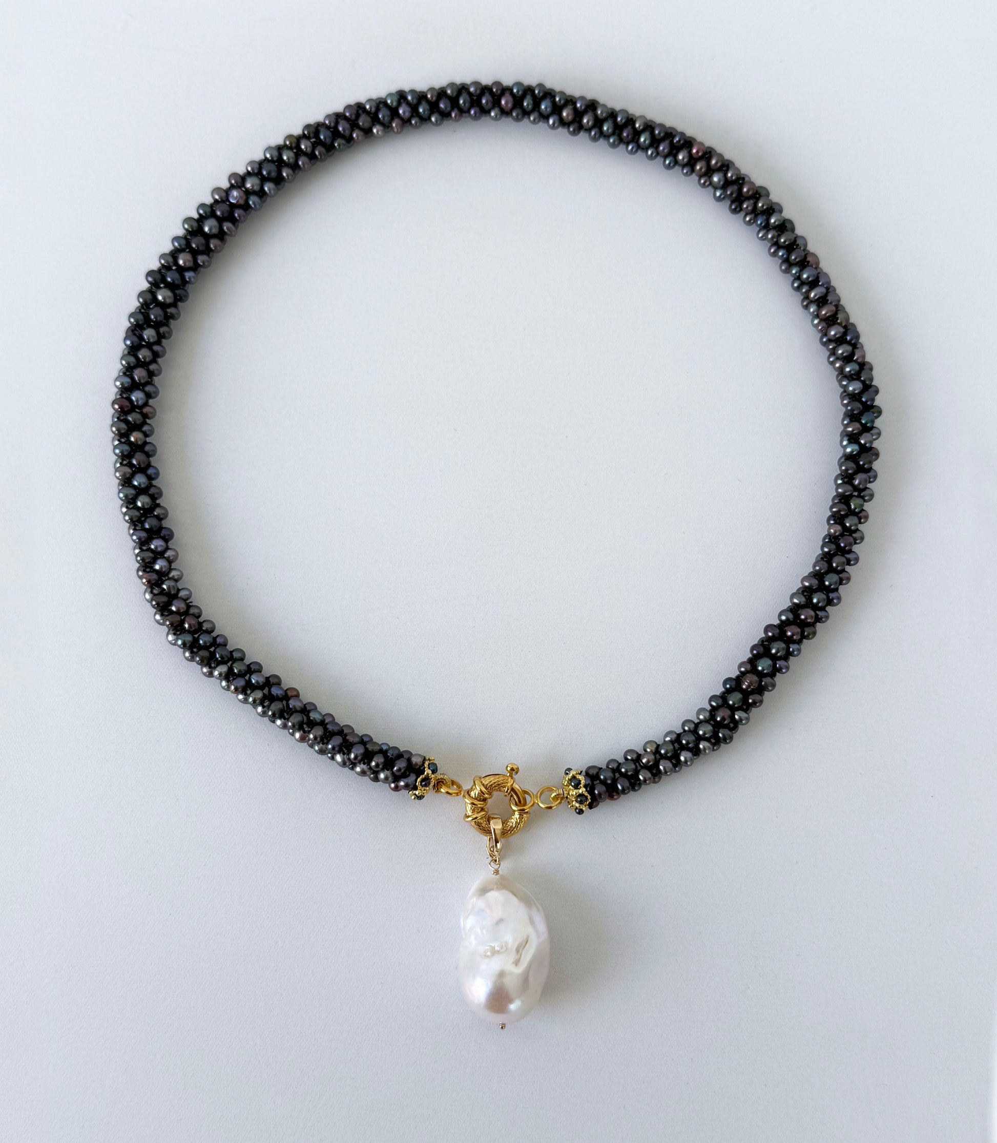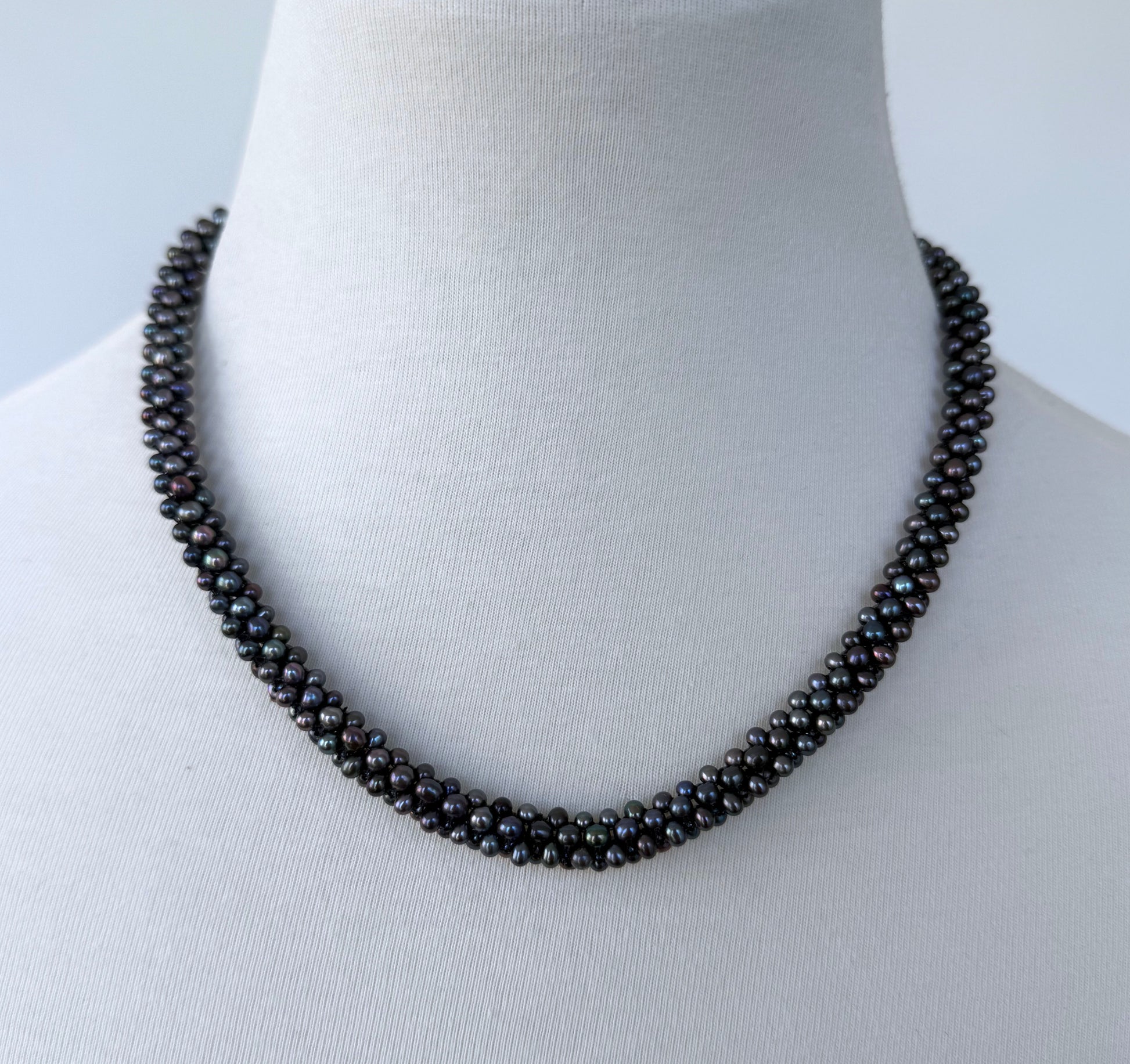 Beautiful Black Pearl Woven Necklace by Marina J.