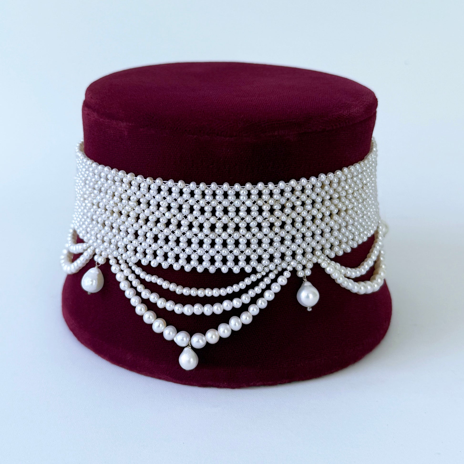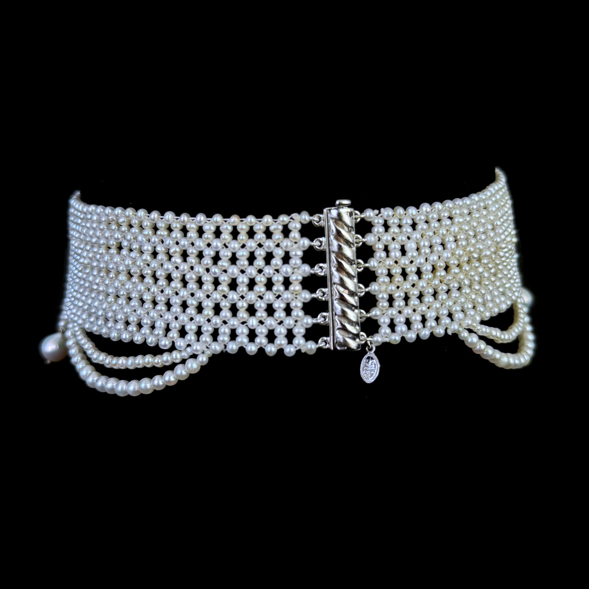 Draped Seed Pearl Woven Choker with Sliding Clasp