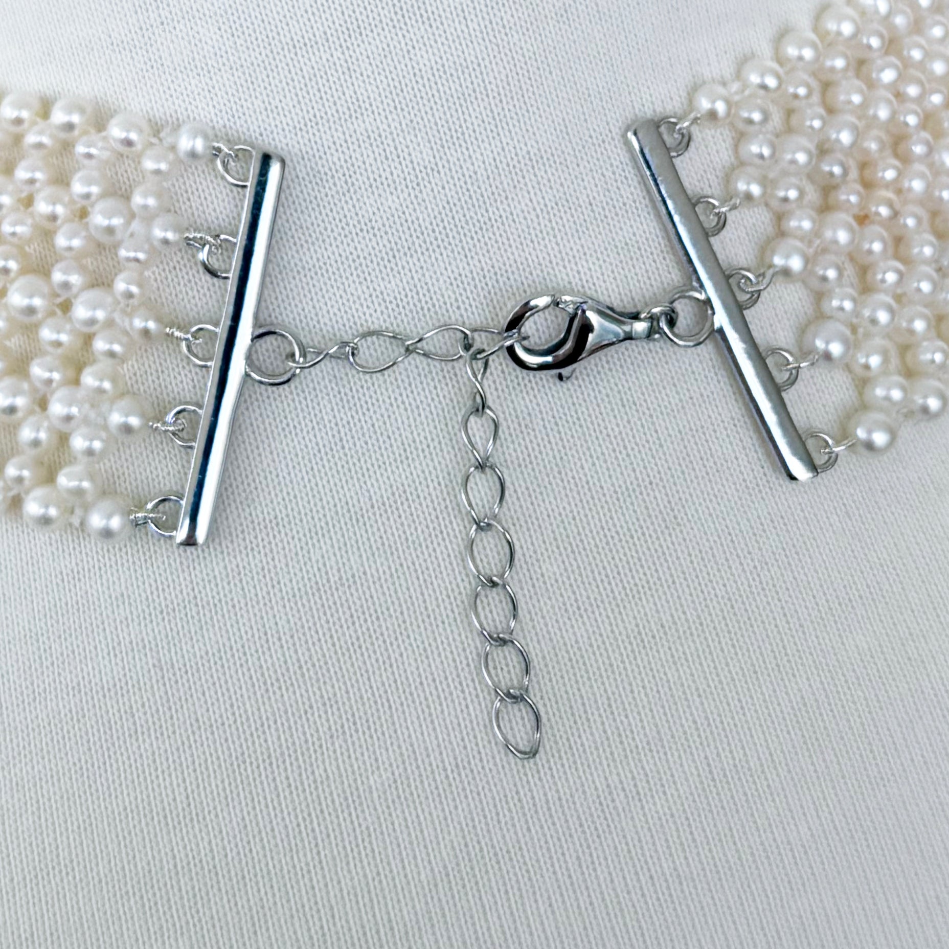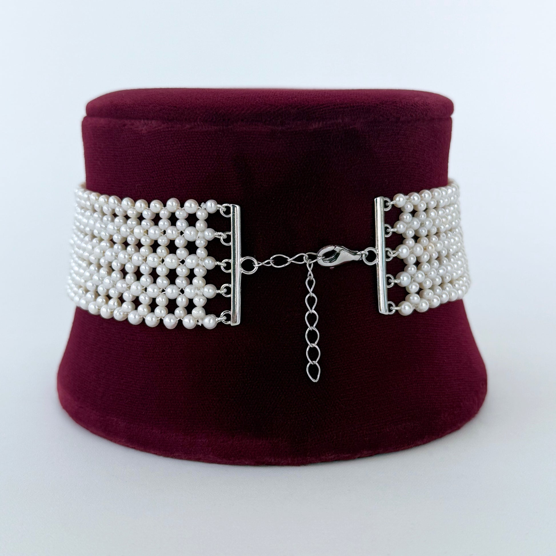 Lace Woven Pearl Choker with Adjustable Rhodium Clasp