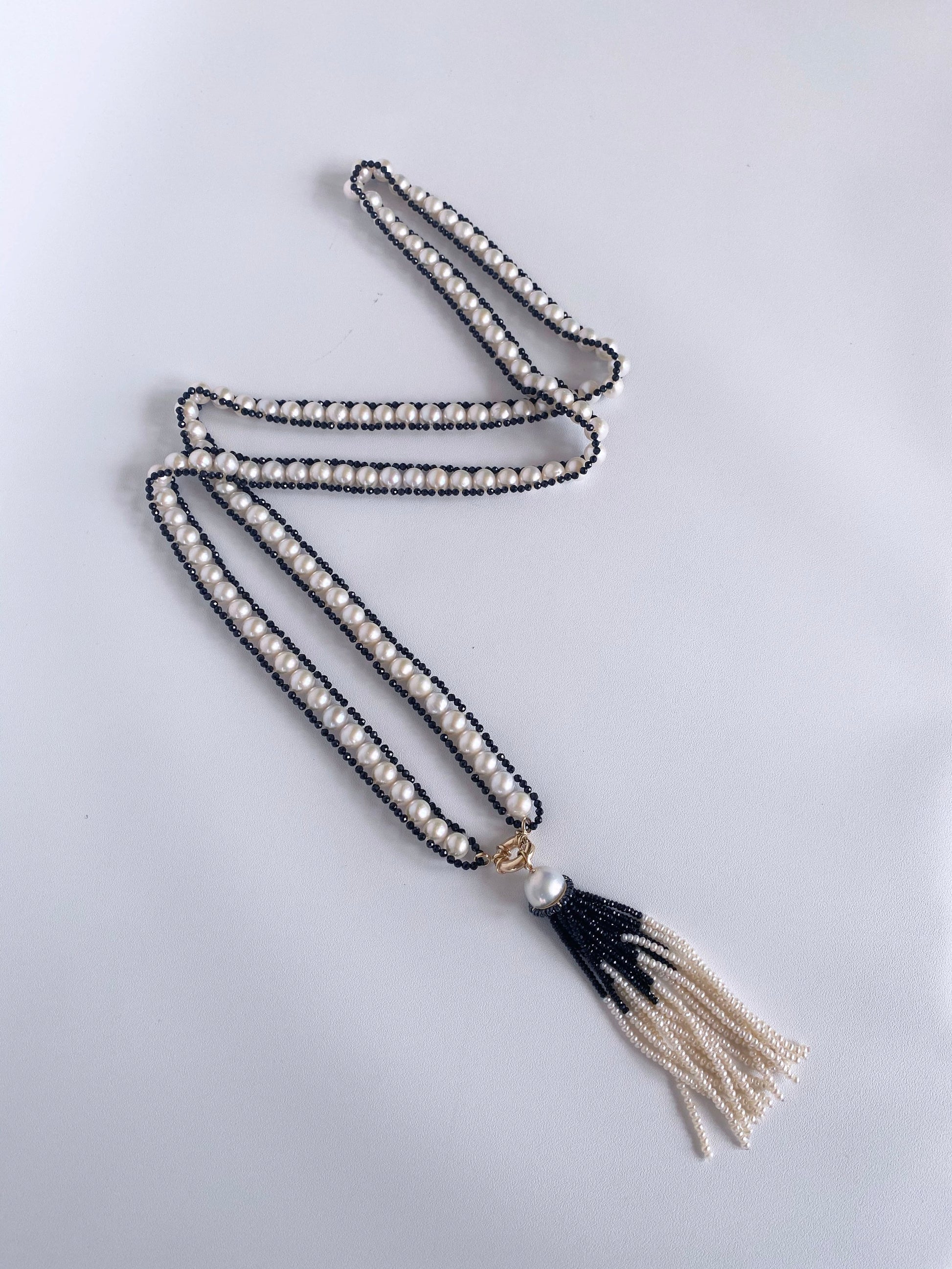 Pearl and Black Spinel Satuoir and Tassel with 14k Yellow Gold