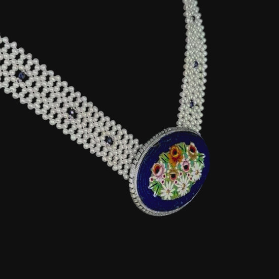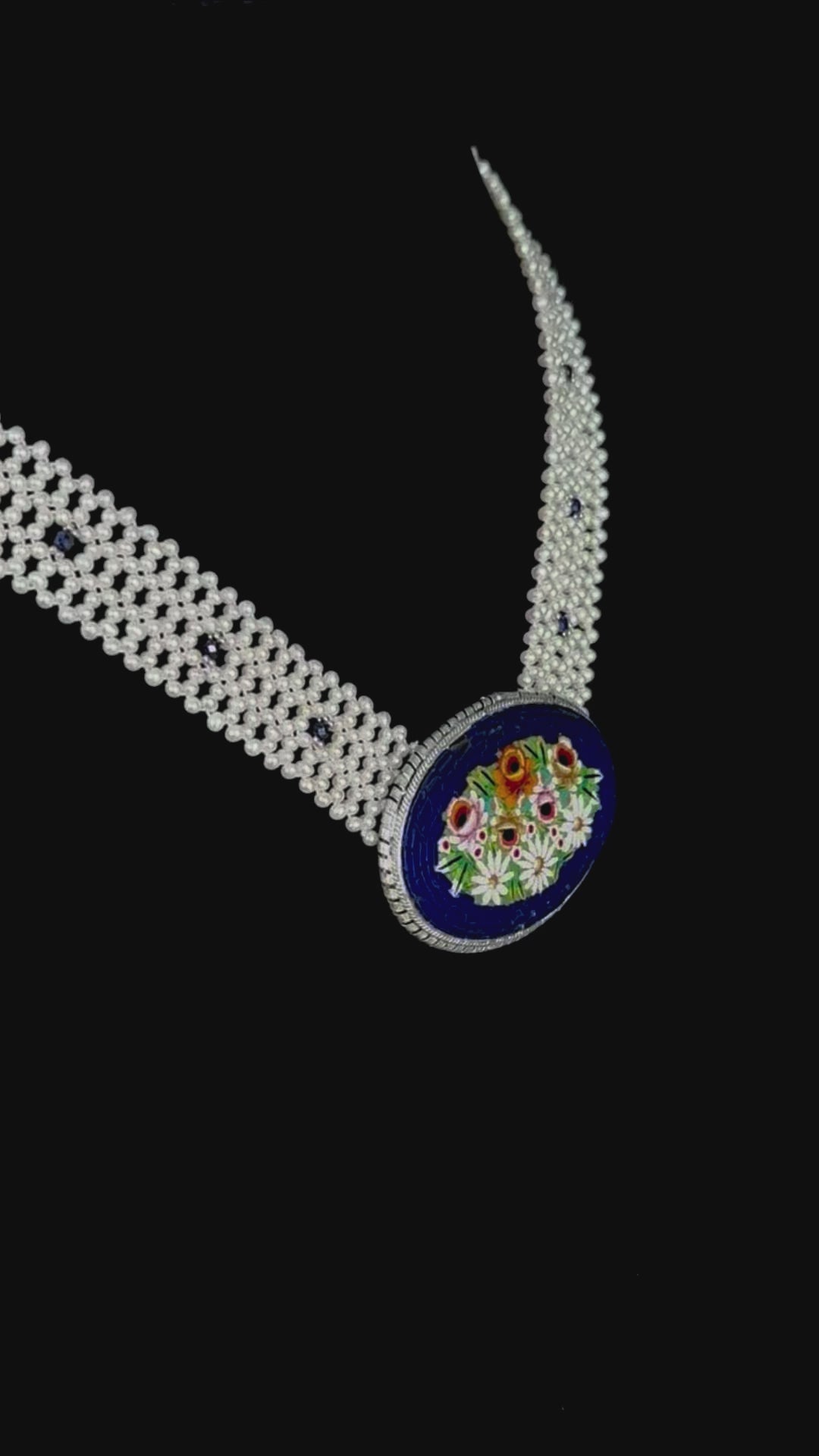 Pearl & Lapis Woven Floral Mosaic Necklace