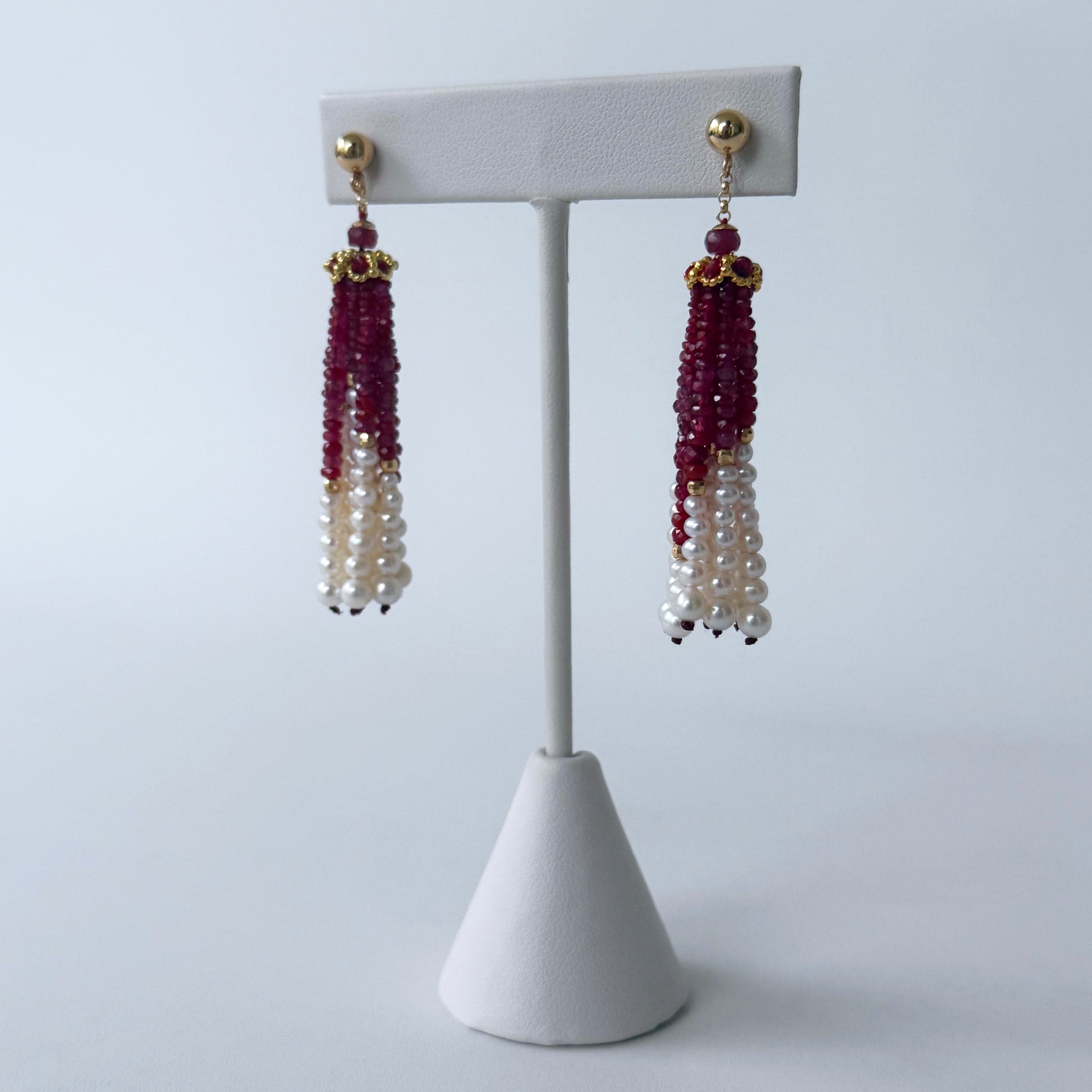 Ruby, Pearl & 14k Graduated Tassel Earrings