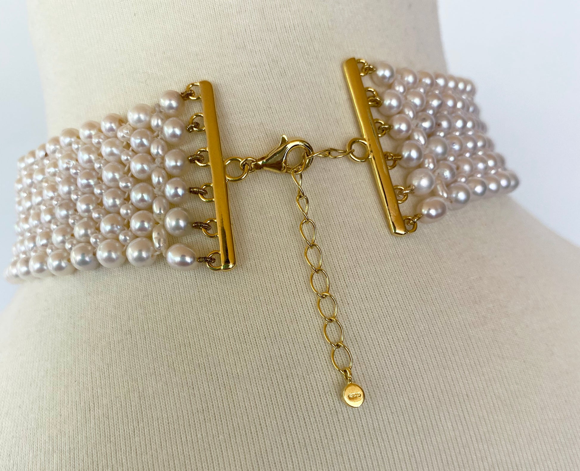 Woven Pearl Choker with Multi Color Semi Precious Stone Centerpiece